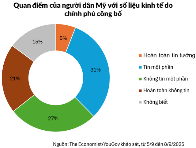 Một khảo sát do YouGov và The Economist thực hiện trên người Mỹ trưởng thành vào đầu tháng 9/2025 cho thấy chỉ có 6% số người được hỏi hoàn toàn tin tưởng các số liệu kinh tế do chính phủ liên bang công bố, 31% chỉ tin một phần, và 48% không tin tưởng ở các mức độ khác nhau.