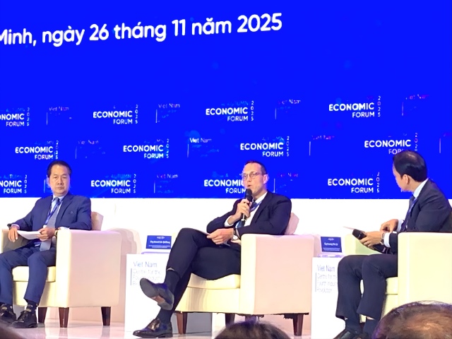 Ông Benoit de Quillacq (cầm mic) tại diễn đàn sáng 26/11 - Ảnh: Tử Kính