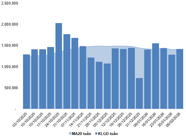 Trong phiên giao dịch ngày 06/02/2026, VN30-Index giảm điểm phiên thứ 5 liên tiếp kèm theo khối lượng giao dịch có sự gia tăng và vượt mức trung bình 20 phiên cho thấy tâm lý bi quan của nhà đầu tư vẫn còn.