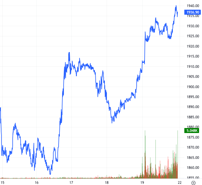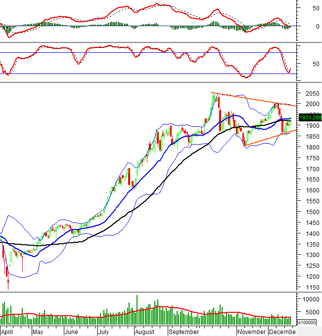Trong tuần giao dịch 15-19/12/2025, hợp đồng 41I1G1000 khởi đầu với trạng thái giằng co nhưng I1G1000 đã nhanh chóng bứt phá mạnh mẽ nhờ sự áp đảo của phe Long. Ở các phiên tiếp theo. dù áp lực bán xuất hiện khiến đà tăng chững lại và chuyển sang đi ngang nhưng bên mua vẫn kiểm soát tốt tình hình giúp cho hợp đồng này tiếp tục tăng vọt. Kết tuần, I1G1000 đóng cửa tại mức 1.936,9 điểm, ghi nhận mức tăng ấn tượng gần 67 điểm so với tuần trước.