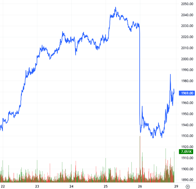 Trong tuần giao dịch 22-26/12/2025, hợp đồng 41I1G1000 đã có một tuần biến động mạnh với phe Long nhanh chóng áp đảo trong phiên giao dịch đầu tuần đã giúp cho I1G1000 bứt phá mạnh mẽ và đà tăng tiếp tục duy trì cho đến các phiên giữa tuần. Tuy nhiên, áp lực bán mạnh đột ngột xuất hiện thổi bay gần như mọi thành quả của các phiên trước đó mặc cho bên mua ra sức hỗ trợ nhưng hợp đồng này chỉ còn tăng nhẹ và đóng cửa tại mức 1,969 điểm trong phiên cuối tuần, tăng 32.1 điểm so với tuần trước đó.