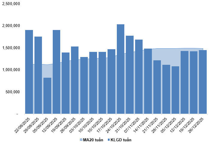 Khối lượng và giá trị giao dịch của thị trường phái sinh lần lượt tăng 62.87% và 45.35% so với phiên ngày 25/12/2025. Tính chung cả tuần, khối lượng và giá trị giao dịch tuần lần lượt tăng 1.99% và 8.8% so với tuần trước.