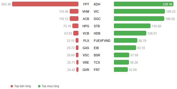 Giá trị giao dịch ròng theo mã cổ phiếu. Đvt: Tỷ đồng