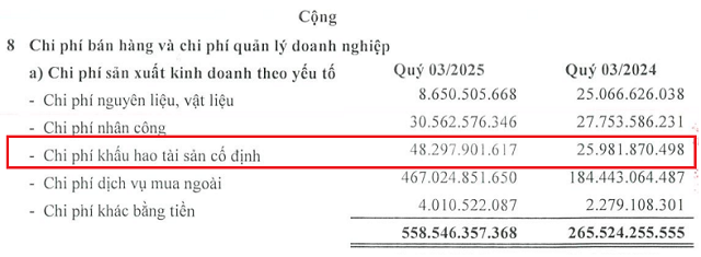 Khấu hao tài sản cố định của PDV tăng mạnh trong khi doanh thu chưa đủ bù đắp khiến lợi nhuận giảm đáng kể. Nguồn: BCTC quý 3/2025 của PDV