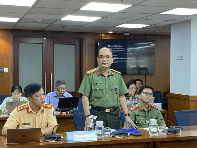 Thượng tá Hồ Thọ Hải, Phó Trưởng phòng Phòng An ninh mạng và phòng chống tội phạm sử dụng công nghệ cao (PA05) cung cấp thông tin tại họp báo chiều 08/01