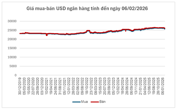 Trong tuần qua (02-06/02/2026), giá USD tăng trở lại trên thị trường quốc tế sau khi rơi xuống mức thấp nhất trong hơn 4 tháng.