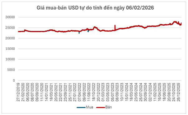 Đáng chú ý nhất là thị trường tự do, nơi giá USD ghi nhận những bước nhảy vọt đầy bất ngờ khi tăng mạnh 800 đồng ở chiều mua và 820 đồng ở chiều bán, đẩy giá giao dịch lên quanh ngưỡng 27,250 – 27,320 đồng/USD (mua vào – bán ra).