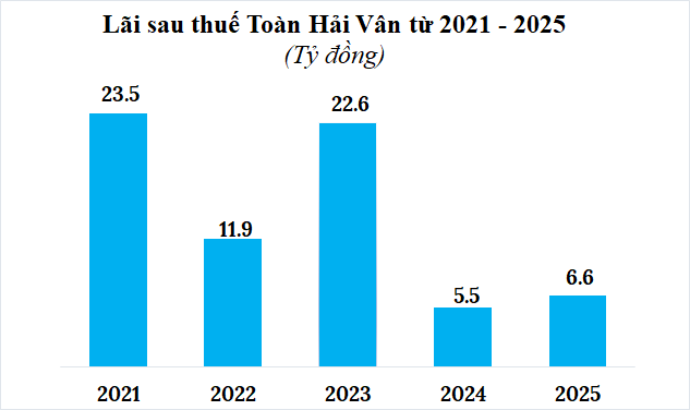Khép lại 2025, Toàn Hải Vân đạt lợi nhuận sau thuế gần 7 tỷ đồng, tăng 20% so với năm trước, dù từng báo lỗ kỷ lục gần 150 tỷ đồng trong nửa đầu năm 2025.