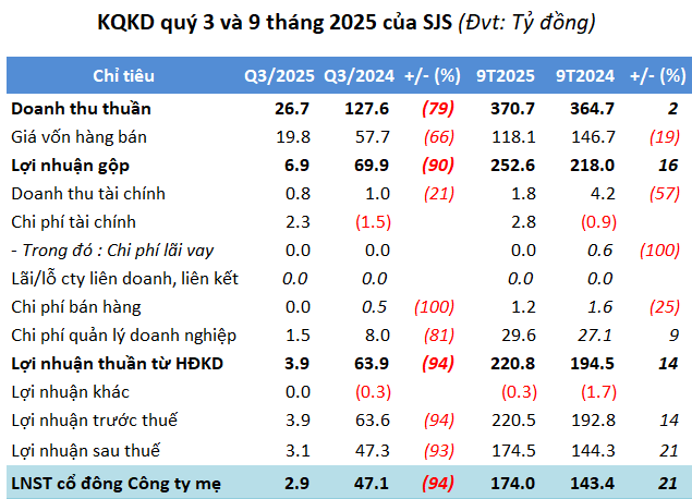 Lợi nhuận quý 3 của SJS lao dốc 94%
