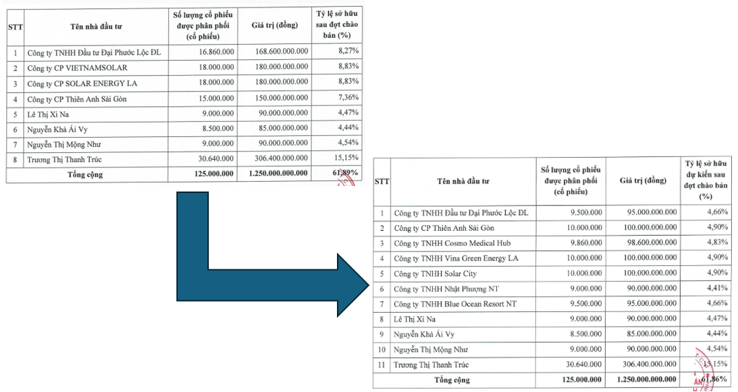Danh sách nhà đầu tư mua cổ phiếu riêng lẻ có sự thay đổi - Nguồn: BMS, người viết tổng hợp