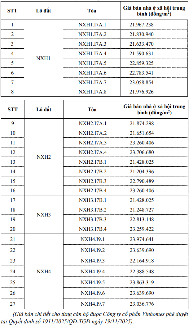 Theo Sở Xây dựng TP Hải Phòng, giá bán trung bình (tạm tính) căn hộ chung cư nhà ở xã hội của CTCP Vinhomes (HOSE: VHM) thuộc dự án xây dựng nhà ở xã hội (giai đoạn 1) tại phường Hải An rơi vào khoảng gần 22.7 triệu đồng/m2 thông thủy.