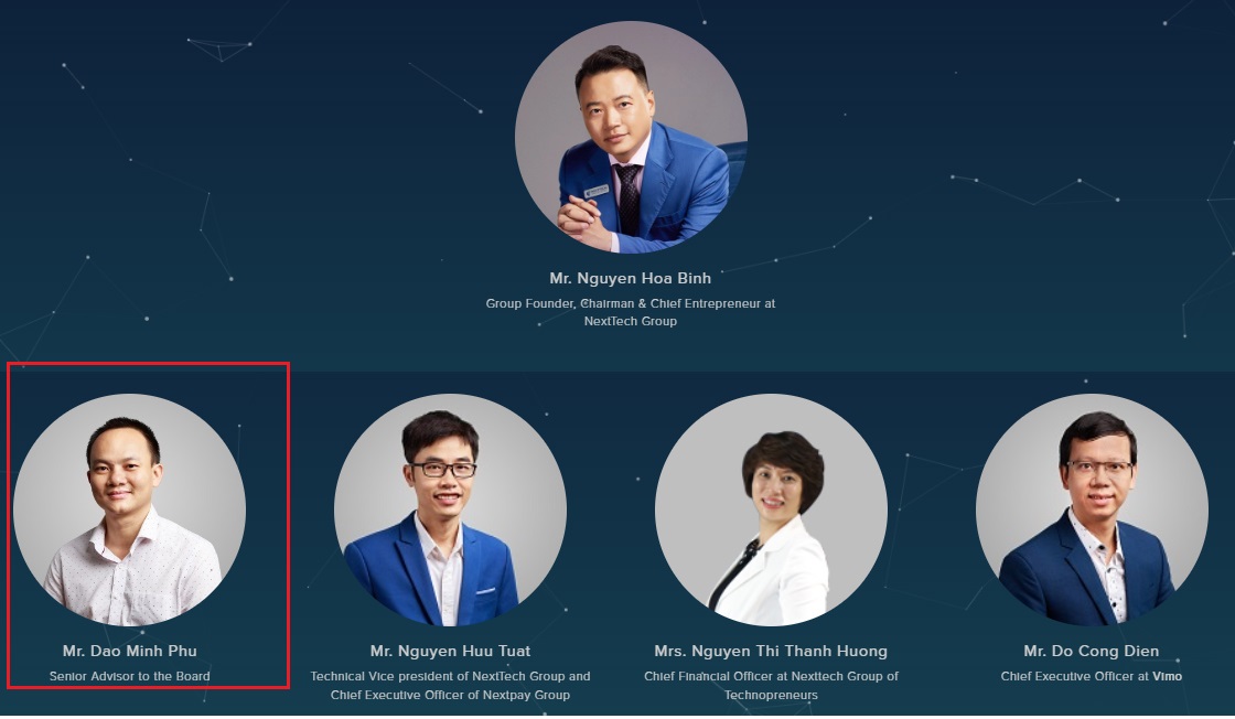 Trên website chính thức của NextTech Asia, Đào Minh Phú xuất hiện với vai trò Cố vấn Cấp cao. Nhưng thực tế, ông Phú trước đó còn nắm nhiều vai trò khác tại NextTech.