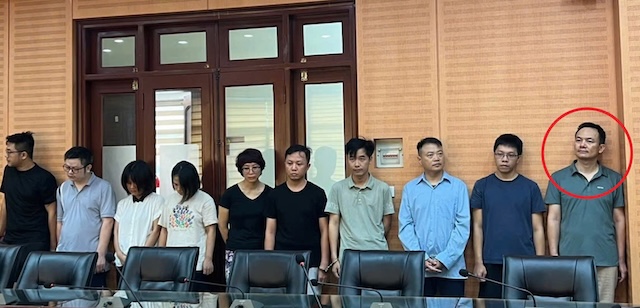 ![]() Đào Minh Phú (khoanh đỏ) và các bị can bị bắt tạm giam liên quan đến vụ án "đồng tiền số AntEx"