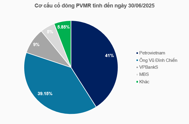 Tính đến thời điểm 30/06/2025, Petrovietnam đang là cổ đông lớn nhất tại PVMR. Danh sách cũng ghi nhận 3 cổ đông lớn khác là ông Vũ Đình Chiến (thành viên HĐQT) nắm 39.15% vốn, Chứng khoán VPBank (VPBankS) nắm 9% và Chứng khoán MB (MBS) nắm 5%.