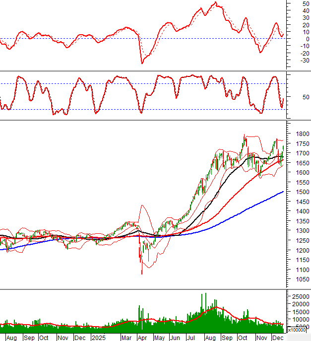 VN-Index tiếp tục tăng và bắt đầu tiến gần đỉnh cũ tháng 10/2025 (tương đương vùng 1,740-1,795 điểm). Trong khi đó, HNX-Index tăng điểm phiên thứ ba liên tiếp và chỉ báo MACD cho tín hiệu mua trở lại.