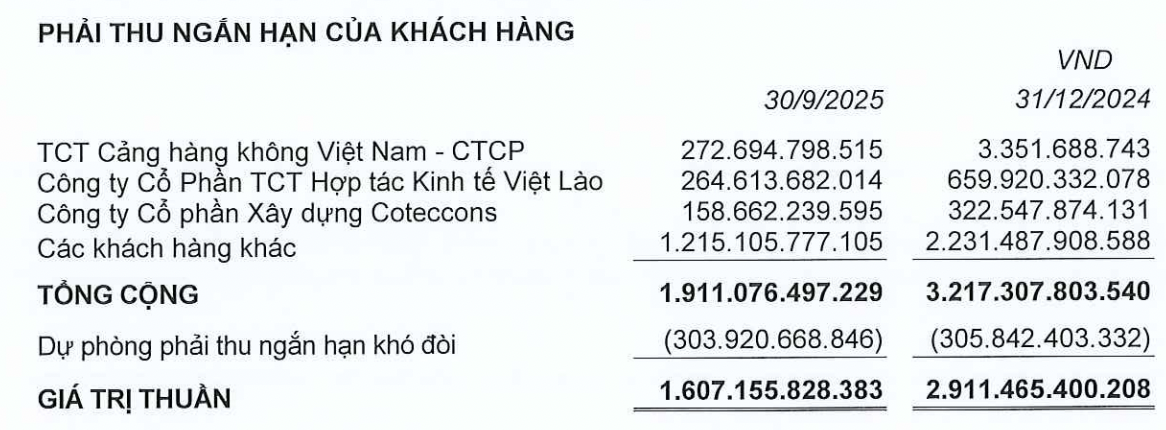 Khoản phải thu ngắn hạn khách hàng giảm 41%, về còn hơn 1.9 ngàn tỷ đồng. Ricons vẫn còn gần 159 tỷ đồng phải thu từ Coteccons (CTD), giảm 51%. Trong khi tăng mạnh tại Tổng Công ty Cảng Hàng không Việt Nam - CTCP (UPCoM: ACV) lên gần 273 tỷ đồng, gấp 80 lần đầu năm. Công ty cũng dự phòng hơn 470 tỷ đồng phải thu ngắn hạn khó đòi.