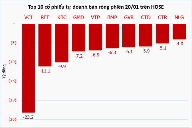 Trong phiên 20/01, tự doanh công ty chứng khoán mua ròng hơn 742 tỷ đồng, trong khi khối ngoại quay đầu bán ròng hơn 1,577 tỷ đồng với tâm điểm là GMD.