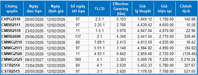 Thị trường chứng quyền ngày 12/02/2026: Sắc xanh lan tỏa khắp thị trường