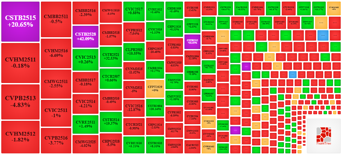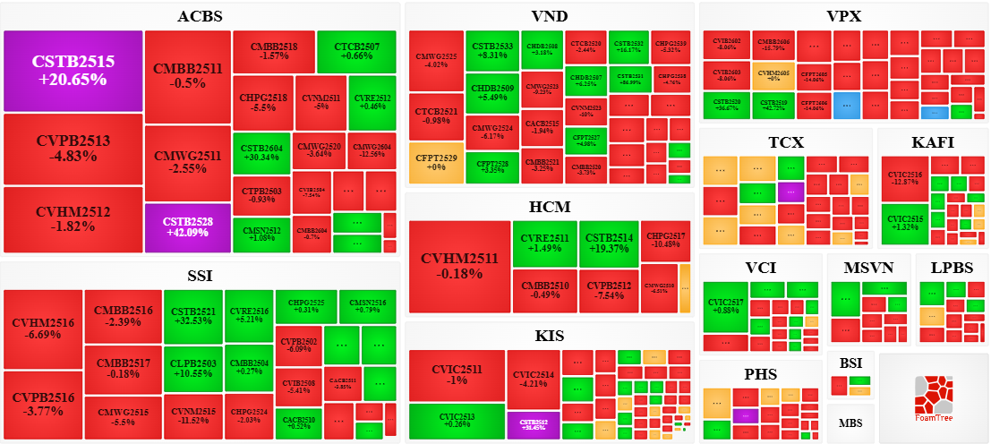 Trong phiên giao dịch ngày 21/01/2026, bên bán áp đảo thị trường khiến phần lớn các mã chứng quyền giảm giá. Cụ thể, các mã chứng quyền lớn trong nhóm giảm giá là CVHM2511, CVPB2513, CMBB2511 và CMWG2511.