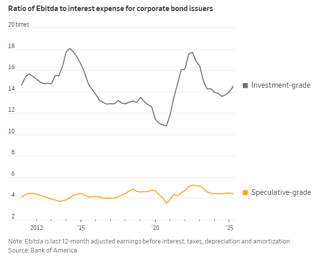 Đồng thời, bảng cân đối kế toán của doanh nghiệp khỏe mạnh, thể hiện qua tỷ lệ giữa thu nhập và chi phí lãi vay vẫn ở mức lành mạnh. Điều này giúp nhà đầu tư tự tin rằng họ có thể kiếm thêm lợi suất mà không cần chấp nhận rủi ro quá lớn.