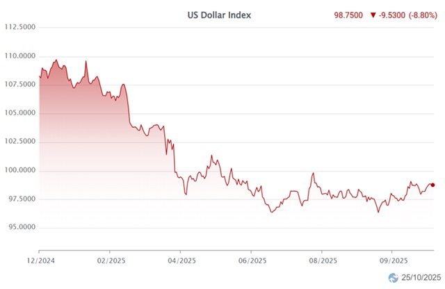 Diễn biến DXY từ đầu năm 2025 đến ngày 25/10