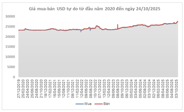 Trong tuần từ 20–24/10/2025, giá USD tăng trở lại trên thị trường quốc tế, bất chấp dữ liệu lạm phát Mỹ yếu hơn dự báo – yếu tố củng cố kỳ vọng Cục Dự trữ Liên bang Mỹ (Fed) sẽ hạ lãi suất trong cuộc họp diễn ra vào tuần tới.