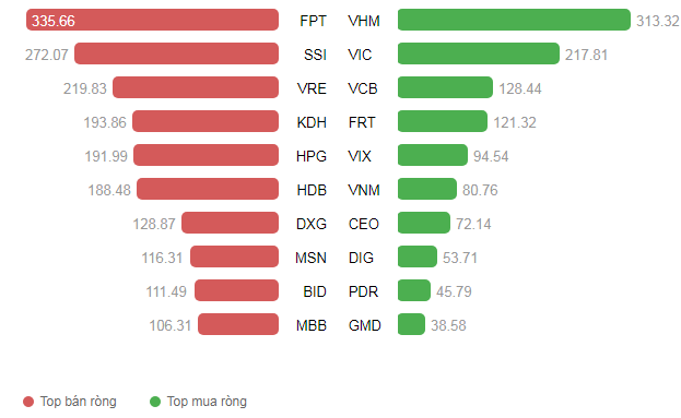 Giá trị giao dịch ròng theo mã cổ phiếu. Đvt: Tỷ đồng