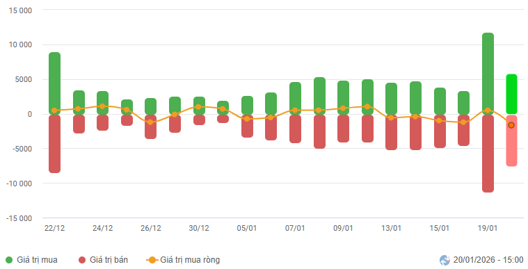 Biến động của dòng tiền từ khối ngoại: Khối ngoại bán ròng trong phiên giao dịch ngày 20/01/2026. Nếu nhà đầu tư nước ngoài duy trì hành động này trong những phiên tới thì tình trạng rung lắc sẽ còn tiếp diễn.