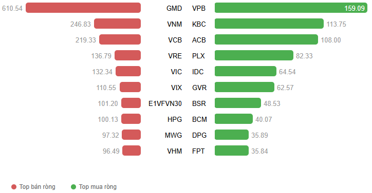 Giá trị giao dịch ròng theo mã cổ phiếu. Đvt: Tỷ đồng