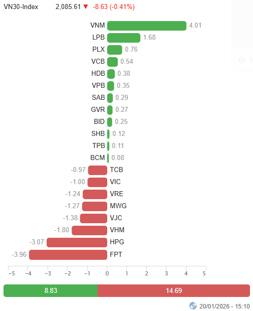 I. PHÂN TÍCH THỊ TRƯỜNG CHỨNG KHOÁN CƠ SỞ NGÀY 20/01/2026