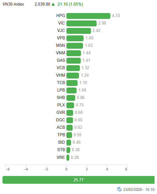 I. PHÂN TÍCH THỊ TRƯỜNG CHỨNG KHOÁN CƠ SỞ NGÀY 23/02/2026