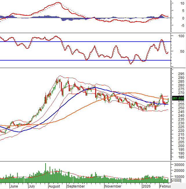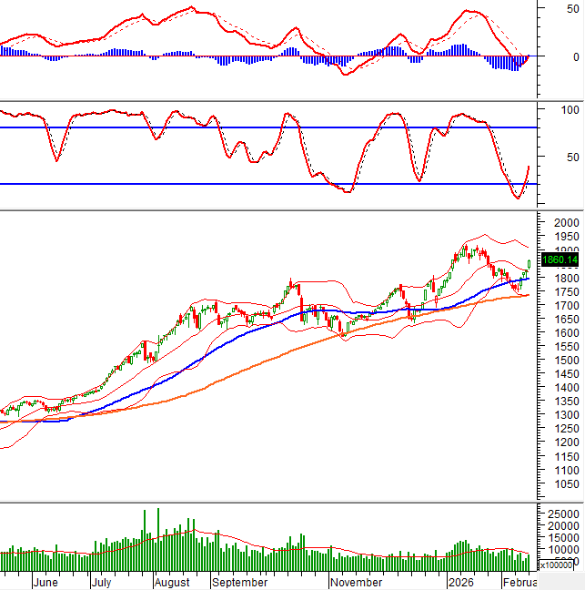 VN-Index khai xuân Bính Ngọ rực rỡ với cây nến xanh dài đồng thời vượt lên đường Middle của Bollinger Bands. Triển vọng tích cực ngắn hạn tiếp tục được củng cố khi chỉ báo MACD đã cho tín hiệu mua trở lại và vượt lên trên ngưỡng 0.