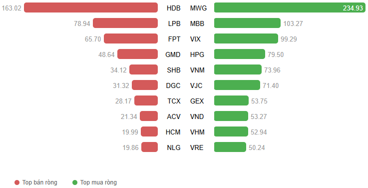 Giá trị giao dịch ròng theo mã cổ phiếu. Đvt: Tỷ đồng