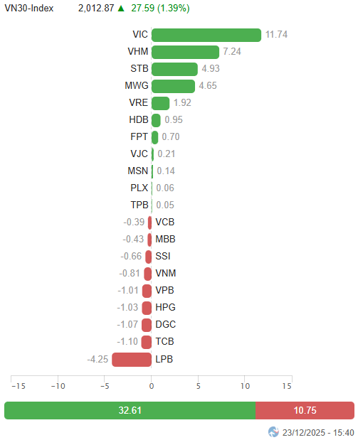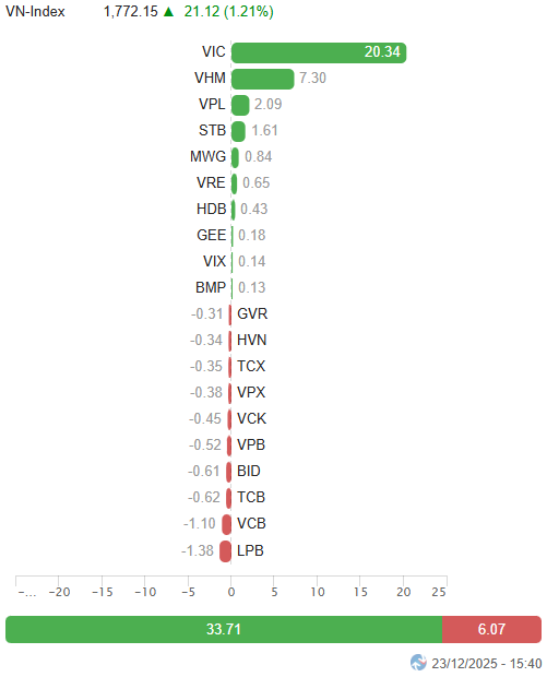 I. PHÂN TÍCH THỊ TRƯỜNG CHỨNG KHOÁN CƠ SỞ NGÀY 23/12/2025