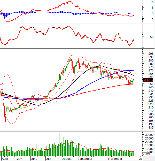 HNX-Index chững lại đà phục hồi khi đường Middle của Bollinger Bands vẫn là kháng cự khá mạnh. Nhiều khả năng chỉ số sẽ còn giằng co ở ngưỡng này trong những phiên tới trước khi xác nhận xu hướng rõ ràng hơn.