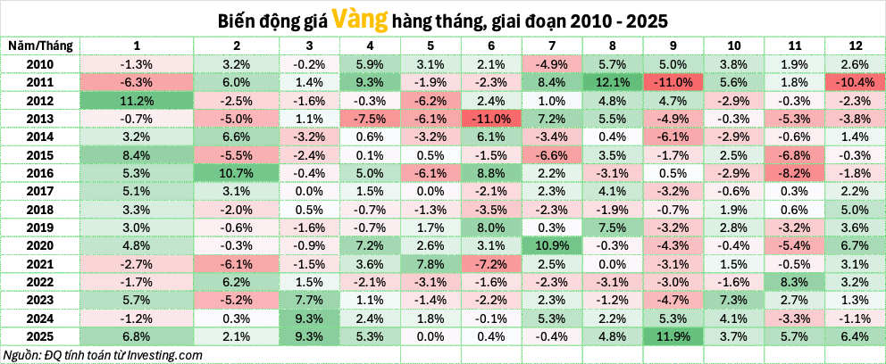Giá vàng tăng trong 11/12 tháng của năm 2025. Số liệu cập nhật đến 27/12.