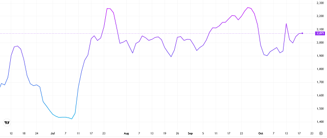 ![]() Chỉ số BDI (Baltic Dry Index) duy trì ở mức cao trong quý 3. Nguồn: tradingeconomics.com