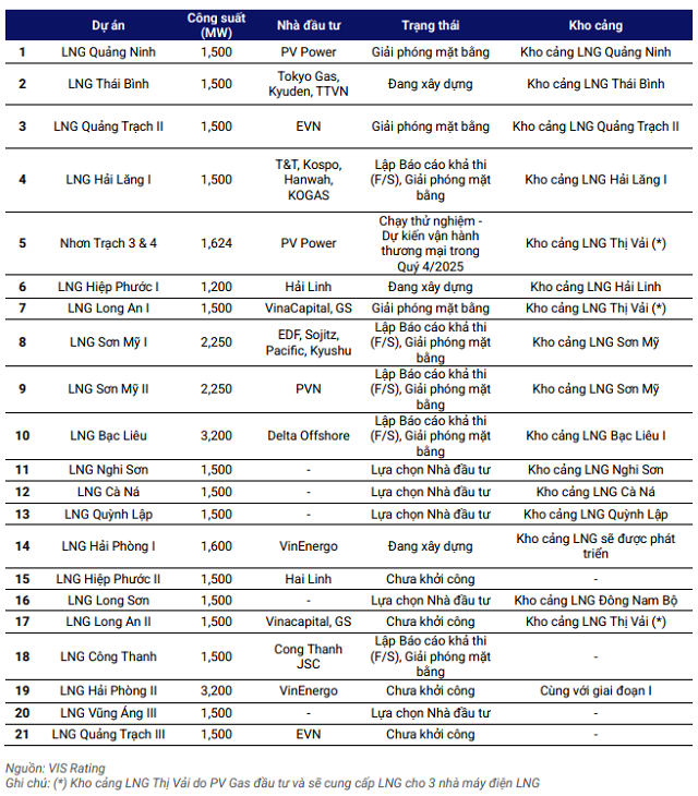 Tuy nhiên, điện LNG là lĩnh vực có mức độ phức tạp lớn hơn so với nhiệt điện than hay điện mặt trời vì cần hệ thống cảng tiếp nhận, kho chứa và đường ống dẫn khí hóa lỏng. Một số dự án như Hải Lăng 1, Cà Ná hay Quảng Ninh đang chậm tiến độ do giải phóng mặt bằng và thủ tục quy hoạch. Theo VIS Rating, nhiều nút thắt này có thể chỉ được tháo gỡ khi bộ máy địa phương ổn định trở lại từ cuối 2025.