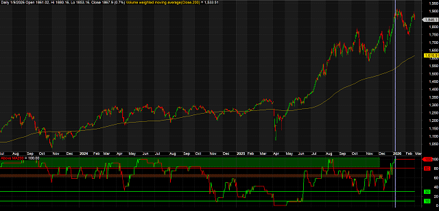 Hiệu ứng tích cực của các cổ phiếu họ dầu khí đã được ghi nhận từ đầu năm 2026 đến thời điểm hiện tại. Tỷ lệ các mã có xu hướng tăng dài hạn đã liên tục duy trì ở mức 100% kể từ giữa tháng 01/2026.