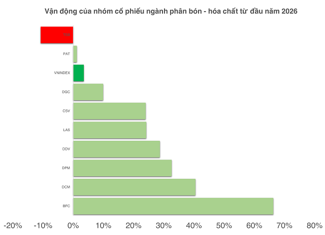 Nhóm ngành có mối liên kết mạnh với dầu khí là phân bón – hóa chất cũng ghi nhận vận động tích cực hơn, với 7/9 mã tăng vượt VN-Index.