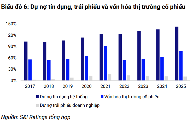 Theo S&I Ratings, Ngân hàng Nhà nước yêu cầu các tổ chức tín dụng kiểm soát tốc độ tăng trưởng dư nợ cho vay bất động sản, đảm bảo không vượt quá mức tăng trưởng tín dụng chung của từng ngân hàng so với thời điểm cuối năm 2025. Đồng thời, dư nợ cho vay trong lĩnh vực này được định hướng ở mức khoảng 25% tổng dư nợ.