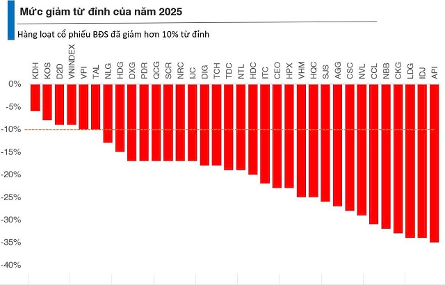 Điển hình như trong một số phiên giao dịch cuối tháng 10/2025, đã có thời điểm gần như toàn bộ 33 cổ phiếu bất động sản được theo dõi đánh mất xu hướng tăng ngắn hạn.