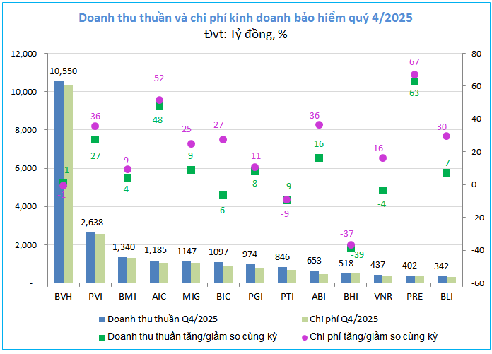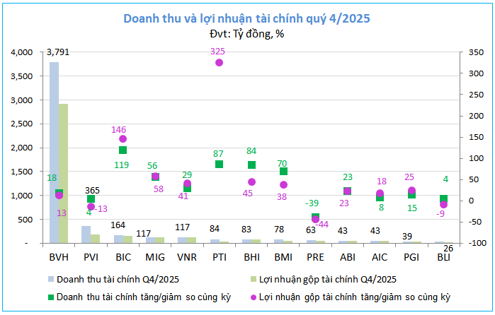 Bức tranh kinh doanh của 13 doanh nghiệp bảo hiểm phi nhân thọ trên sàn trong quý 4/2025 hiện lên sự đối lập, khi sự tăng trưởng doanh thu không còn đi đôi với sự bứt phá về lợi nhuận.