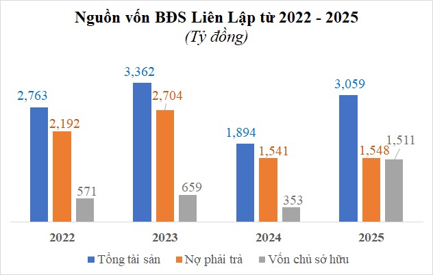 Động thái tăng vốn quy mô lớn đã giúp các chỉ số an toàn tài chính được cải thiện đáng kể. Hệ số nợ phải trả trên vốn chủ sở hữu từ mức gần 4.4 lần năm 2024 giảm mạnh xuống chỉ còn hơn 1 lần vào cuối năm 2025. Tương tự, hệ số dư nợ trái phiếu trên vốn chủ sở hữu cũng thu hẹp đáng kể từ 4.2 lần xuống gần 1 lần.