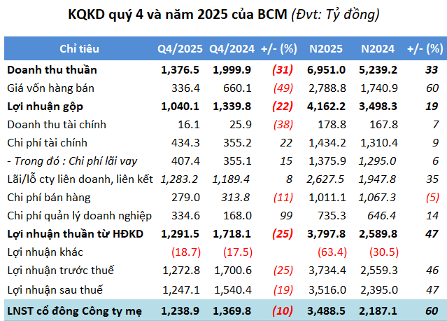 BCM hụt hơi quý 4 nhưng vẫn lập đỉnh lợi nhuận 2025, dư nợ trái phiếu hơn 15.7 ngàn tỷ