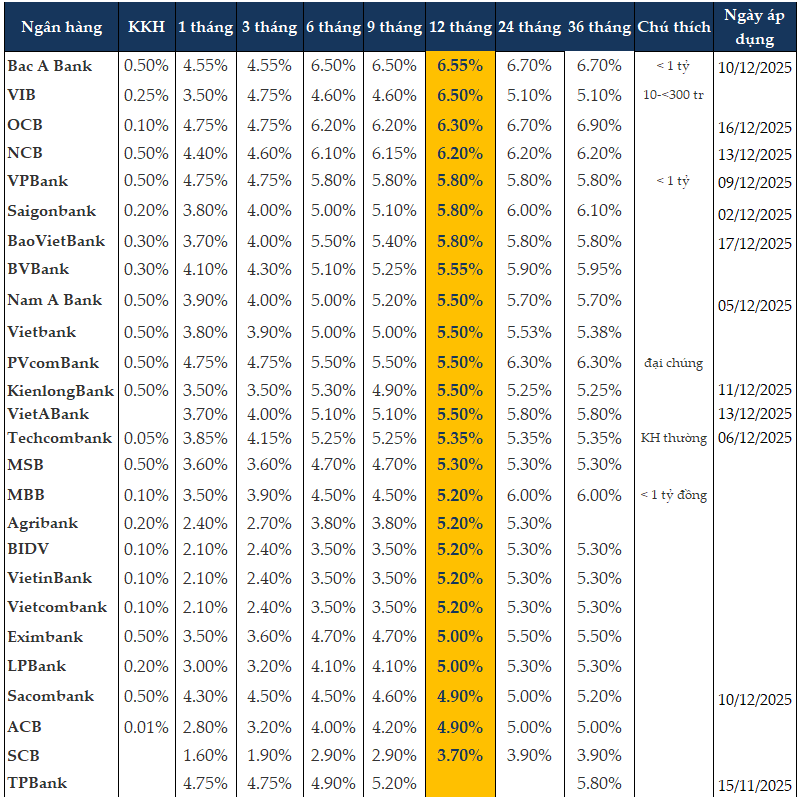 Lãi suất tiền gửi tiết kiệm cá nhân tại các ngân hàng ngoại tính đến ngày 17/12/2025