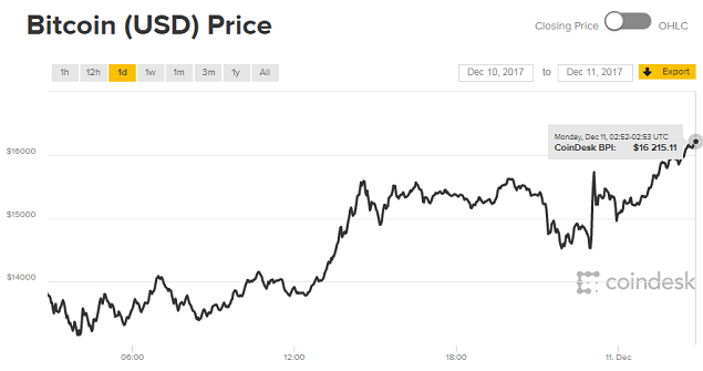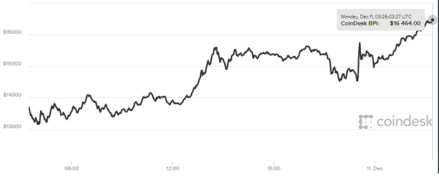 Bitcoin ngày 11/12: Sắp chạm ngưỡng 17,000 USD!