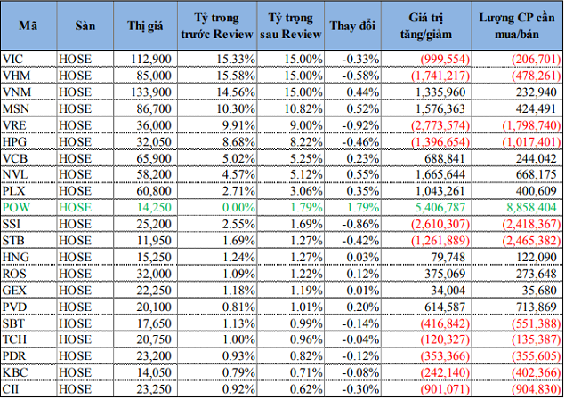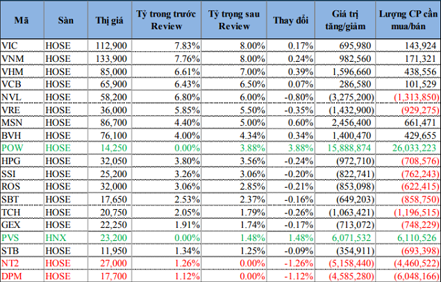 Ở chiều ngược lại, nhiều khả năng sẽ không có cổ phiếu nào bị loại ra khỏi danh mục của quỹ trong kỳ review lần này.