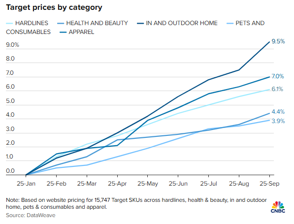 Cả Walmart và Target đều tuyên bố đang cố gắng kiểm soát giá cả trong bối cảnh chi phí tăng cao. Target nhiều lần nhấn mạnh họ sẽ chỉ tăng giá "như một biện pháp cuối cùng" và chỉ ra việc duy trì giá ổn định đối với nhiều mặt hàng đi học như bút màu, vở và tập hồ sơ từ năm 2024 sang 2025.