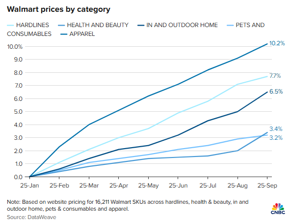 CEO Doug McMillon của Walmart đã thừa nhận trong một hội nghị của Goldman Sachs vào tháng 9 rằng thuế quan đã gây áp lực chi phí cho công ty: "Chúng tôi đã thấy một sự gia tăng đều đặn về mức chi phí hàng hóa, điều này tạo ra mức lạm phát một con số mà chúng tôi đang phải đối phó hiện nay”.